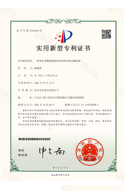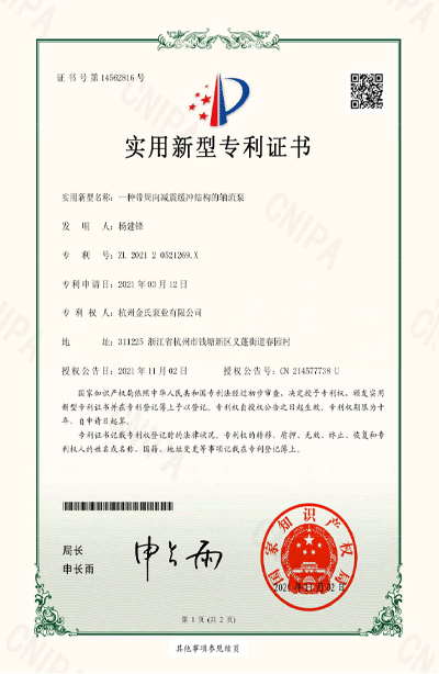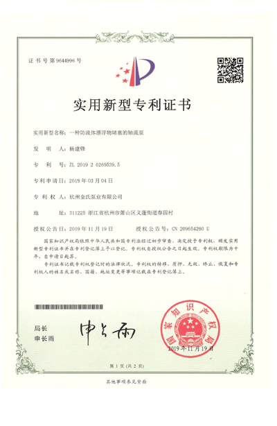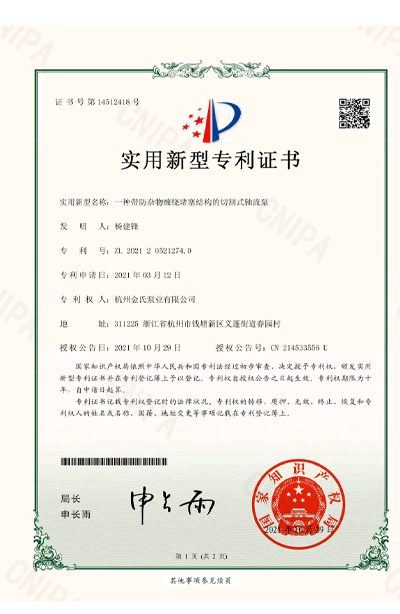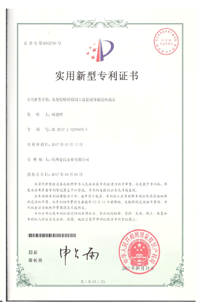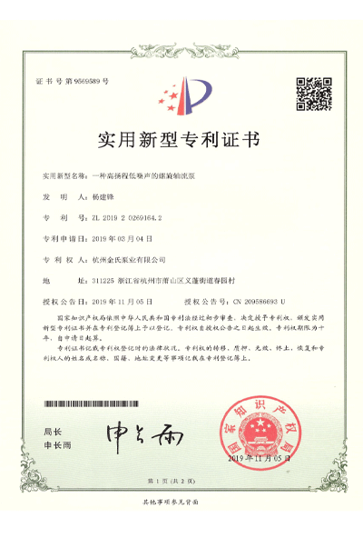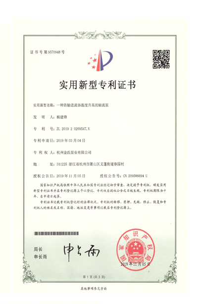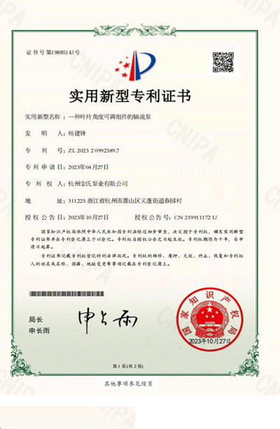 杭州金氏泵业有限公司在轴流泵领域拥有40多项专利技术,涵盖双向出水结构、抗气蚀结构、高比转速检测设备等多个创新方向。