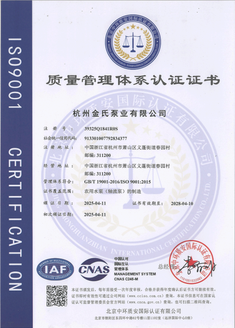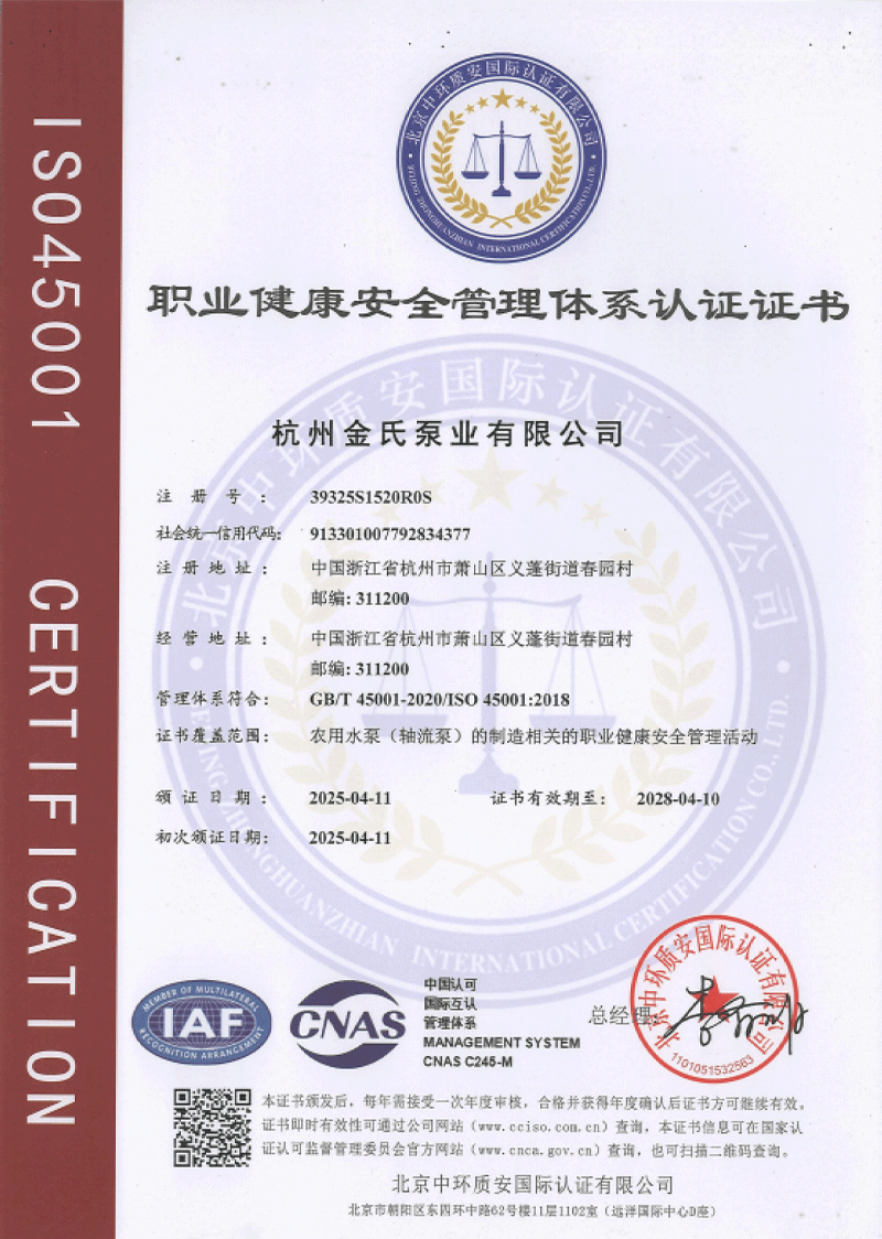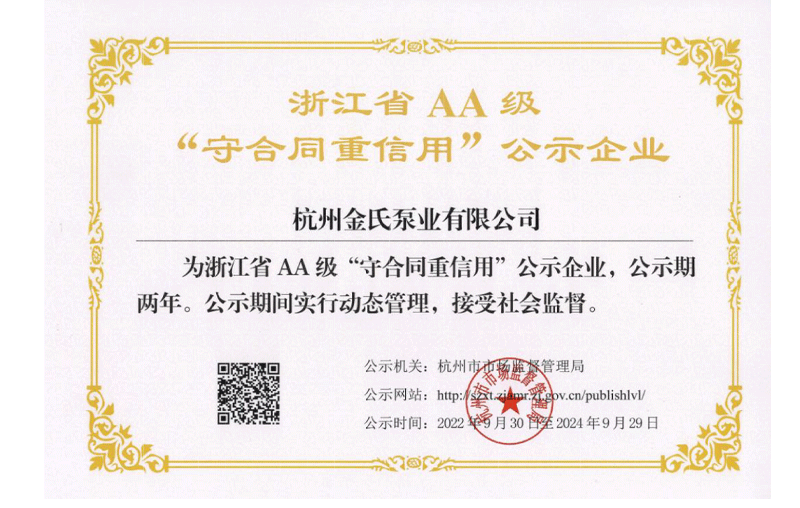 杭州金氏泵业有限公司是杭州钱塘区农用水泵行业的重要企业之一,公司通过持续的技术创新和市场拓展,已成为国内泵类设备制造领域的重要参与者,属于《中国农业机械工业协会》、《中国水利企业协会》等组织的会员及理事单位,是中国商业联合会《给排水设备设施售后服务要求》起草单位之一。
